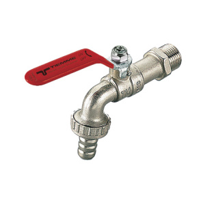 Кран шаровый сливной со штуцером Tiemme Eolo (красная плоская стальная ручка)
