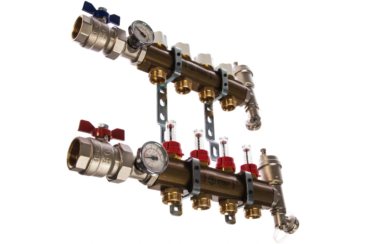 Коллекторная группа 4 отвода 1"x3/4"(18)EK в сборе с расходомерами Stout (латунь) (SMB-0473-000004)