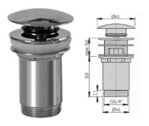 Донный клапан для умывальника Azario 1 1/4" clic-clac блистер Хром (AZ-105-CHR)
